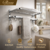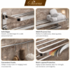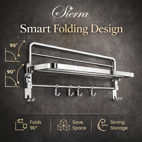 Foldable upper and lower shelf Towel Rack: The innovative folding upper shelf and lower rod add a new dimension of versatility to your space. You can fold down the upper shelf to create extra space for larger items, such as bath products or toiletries. The foldable lower rod is perfect for hanging towels, robes, or other items and can be neatly tucked away when not in use, maintaining a clutter-free environment.